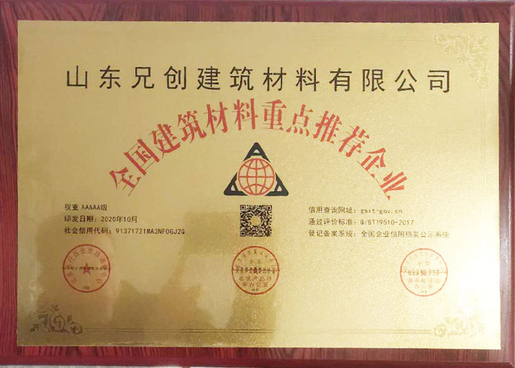 • 全國建筑材料重點推薦企業-山東兄創建筑材料有限公司